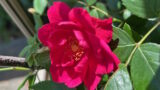 妻の実家から頂いた挿し木の名前のわからない赤いつるバラが咲きました。昨日実家の本家赤いつるバラを見てきましたが、我が家の鉢植えとは違ってさすが地植えといった感じでその花の大きさに驚きました。